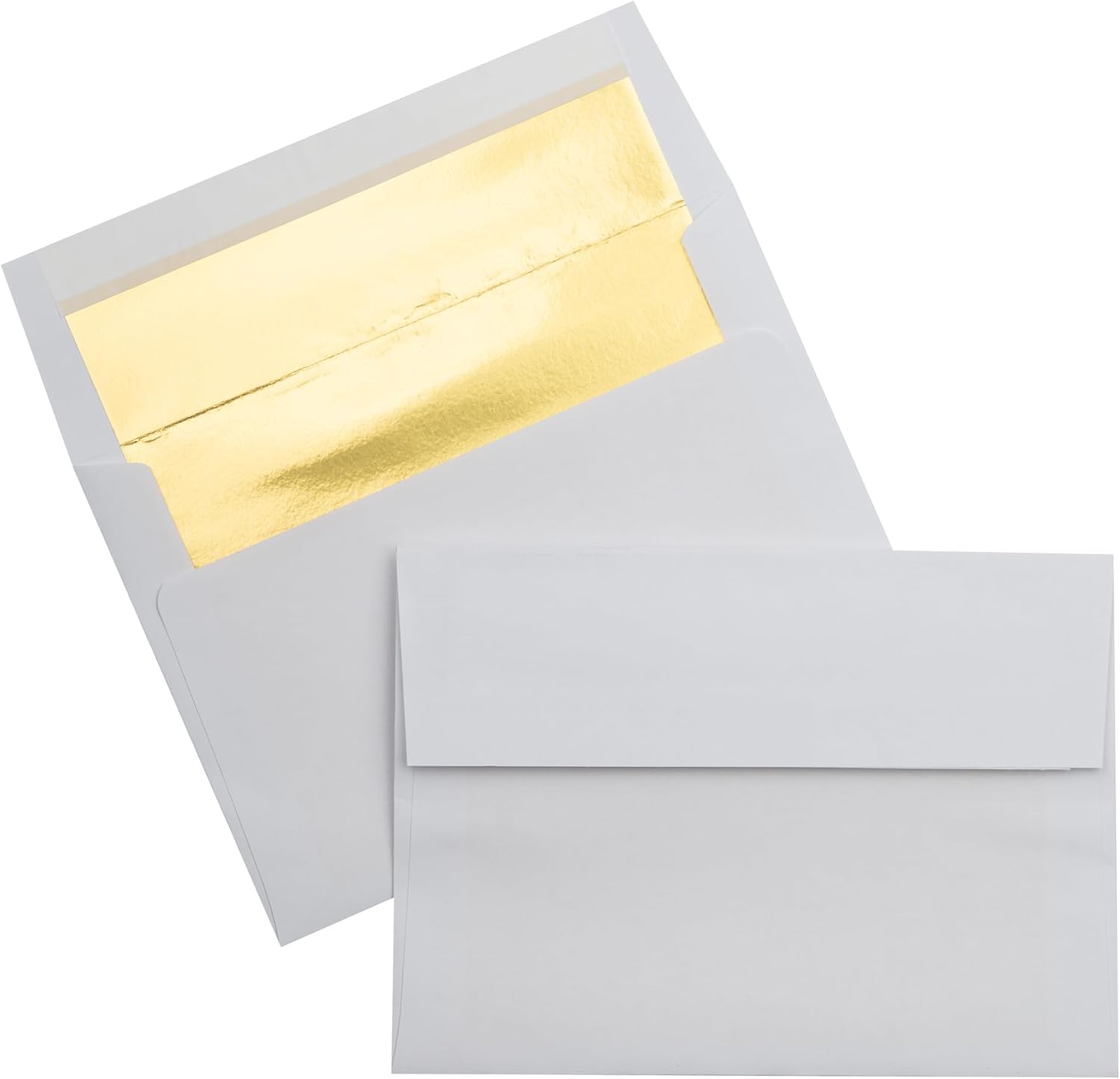 LUXPaper A7 Foil Lined Invitation Envelopes | Peel & Press | 5 1/4" x 7 1/4" | White w/Gold LUX Lining | 60lb. Text | 50 Qty