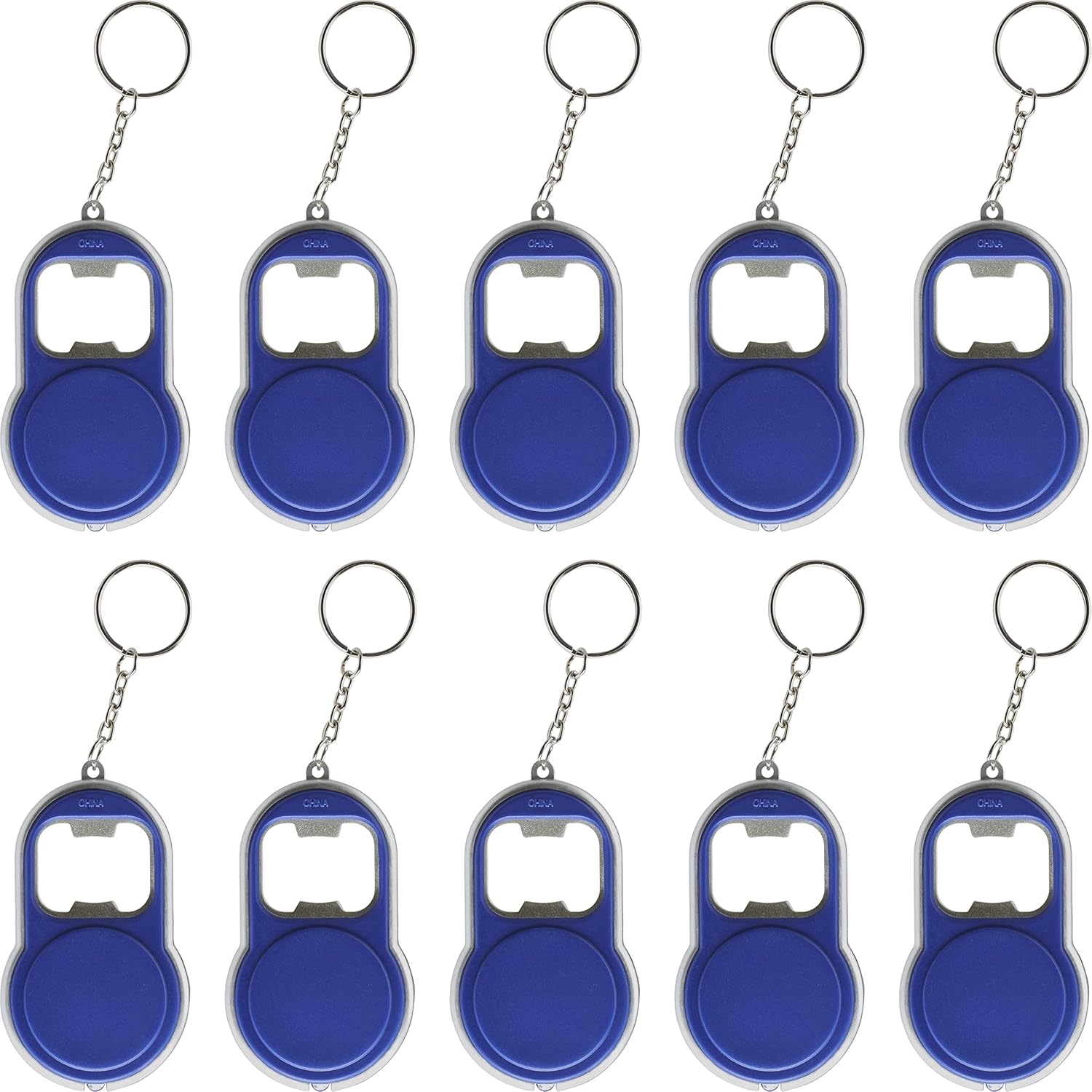 Bottle Opener & LED Keychains Set of 10, Bulk Pack - Perfect for Tradeshows, Party Favors, Other Events - Blue