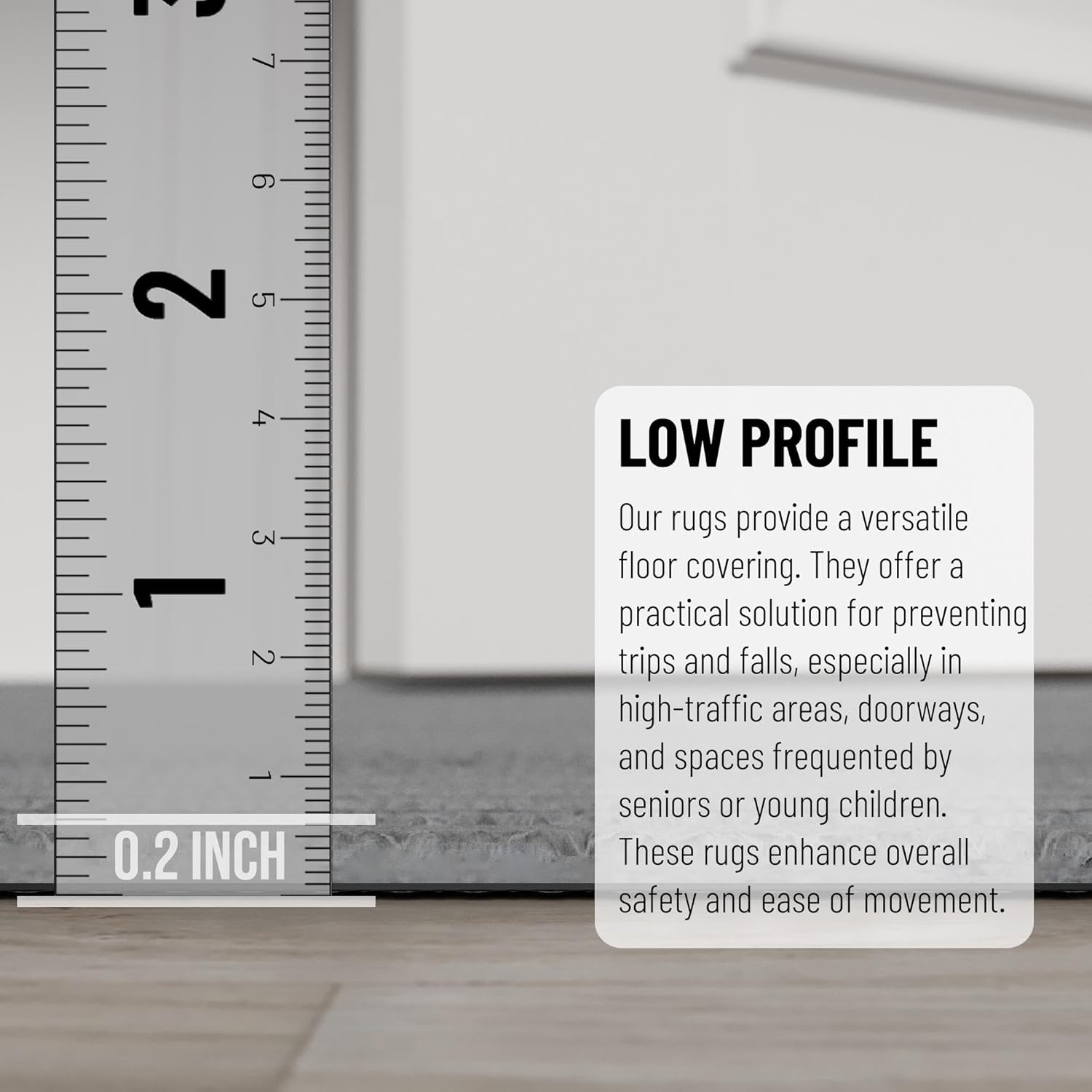 - Enhanced Durability with Scrape Rib Pile Texture: Made from strong, wear-resistant polyester featuring a scrape rib pile that traps dirt and debris on the surface for easier cleaning while providing excellent durability. The slim build lays flat—prevents curling or bunching and fits easily under doors and furniture.