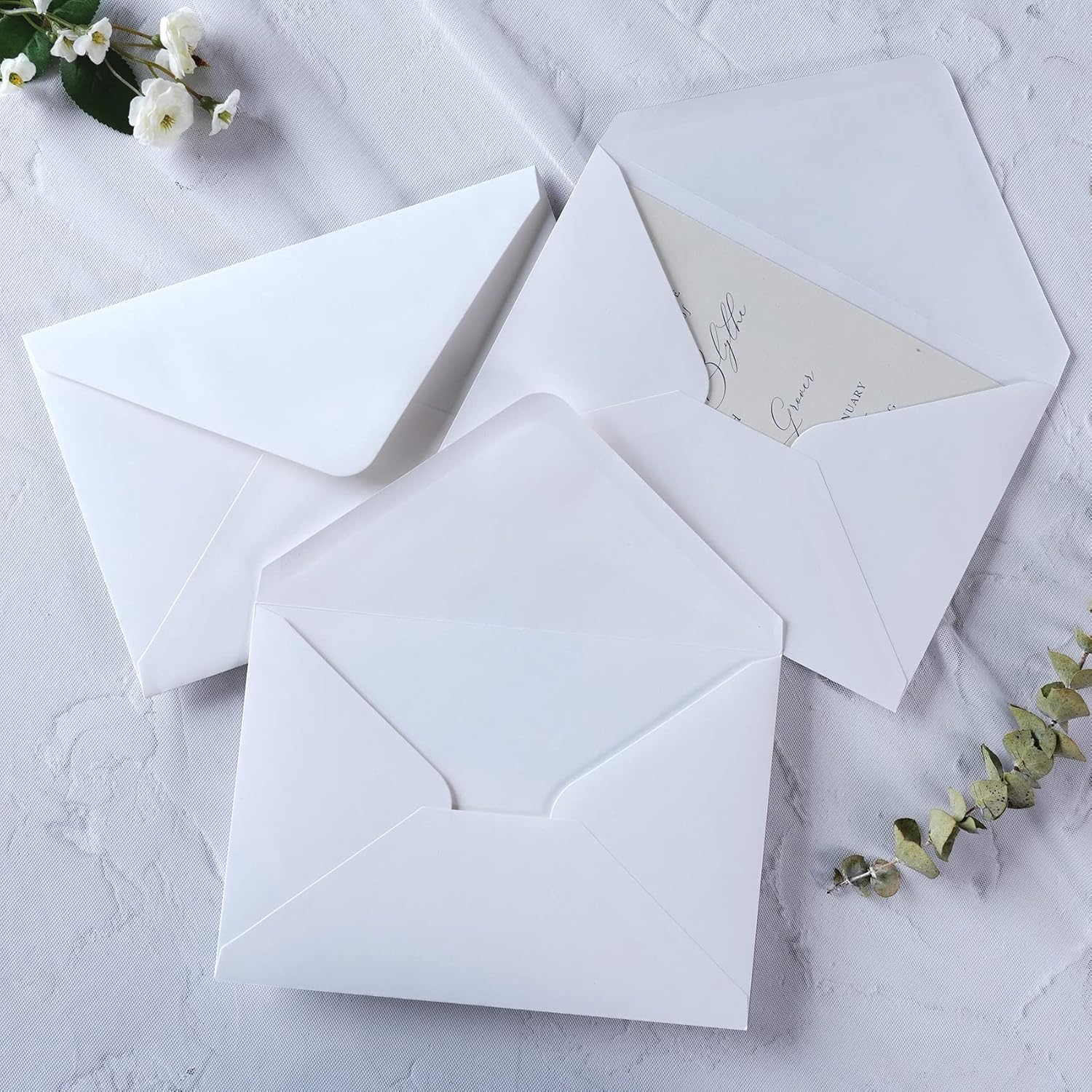 PONATIA 50 PCS/Pack A7 Envelopes, 5.25 x 7.48'' White Envelope, Perfect For 5 x 7'' Wedding Invitation Cards, Christmas Gift Cards Envelopes, Acrylic Invitations, Photos