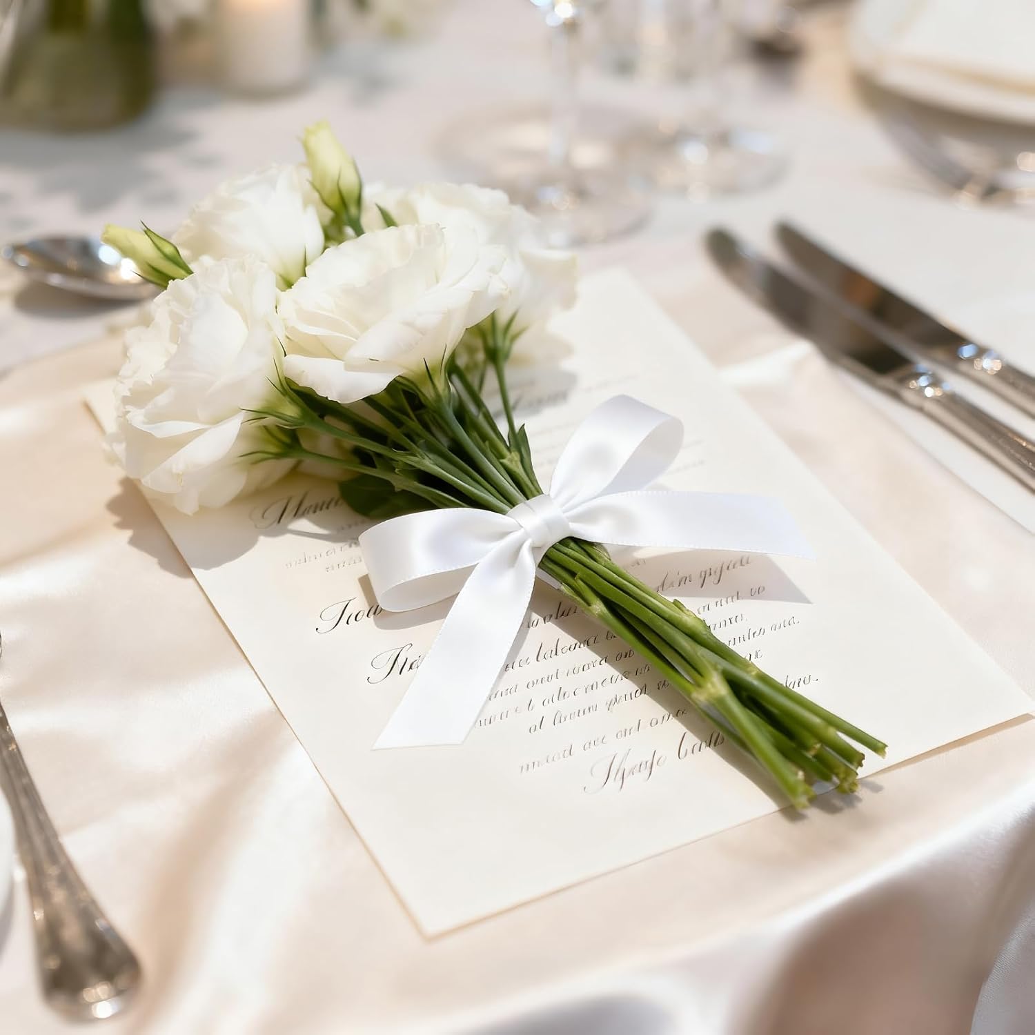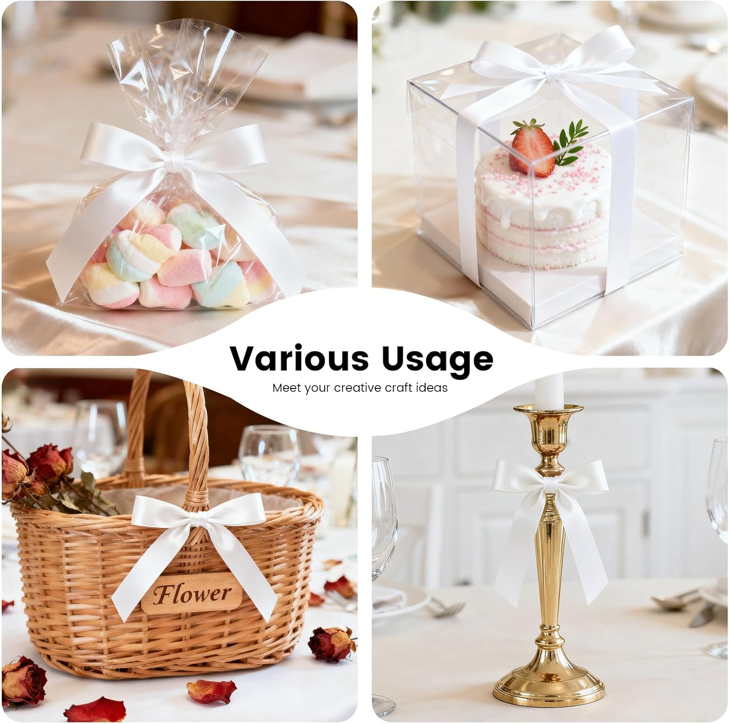 - 【High Quality】: Our fabric satin ribbon is made of 100% high-quality polyester. The single face ribbon for gift wrapping is White color and has smooth texture which is easy to cut and use.