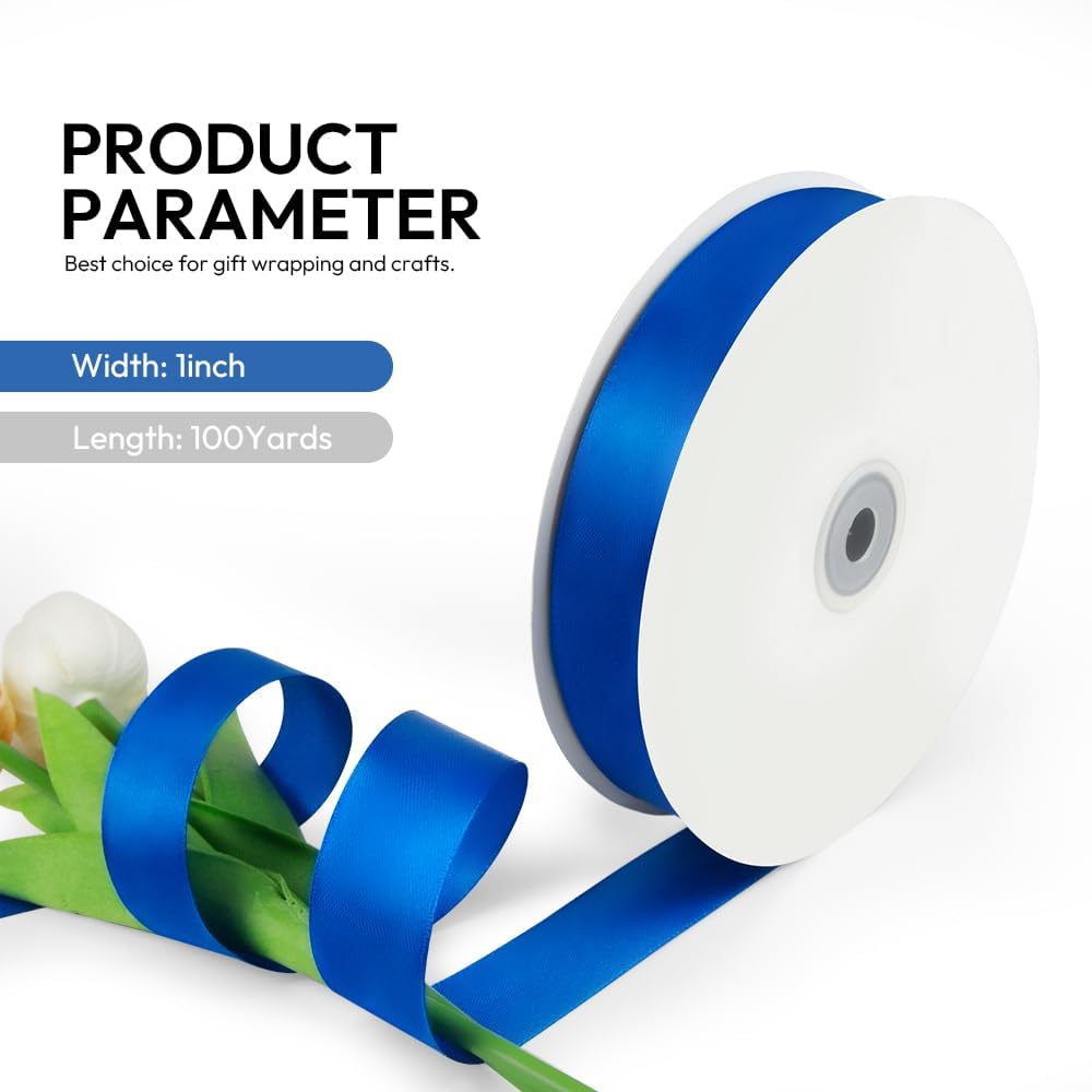 1 Inch 100 Yards Satin Ribbon Royal Blue, Solid Color Fabric Ribbon for Gift Wrapping, Wedding, Polyester Gift Ribbon for Birthday Party Decoration, Craft, Hair, Floral, Sewing