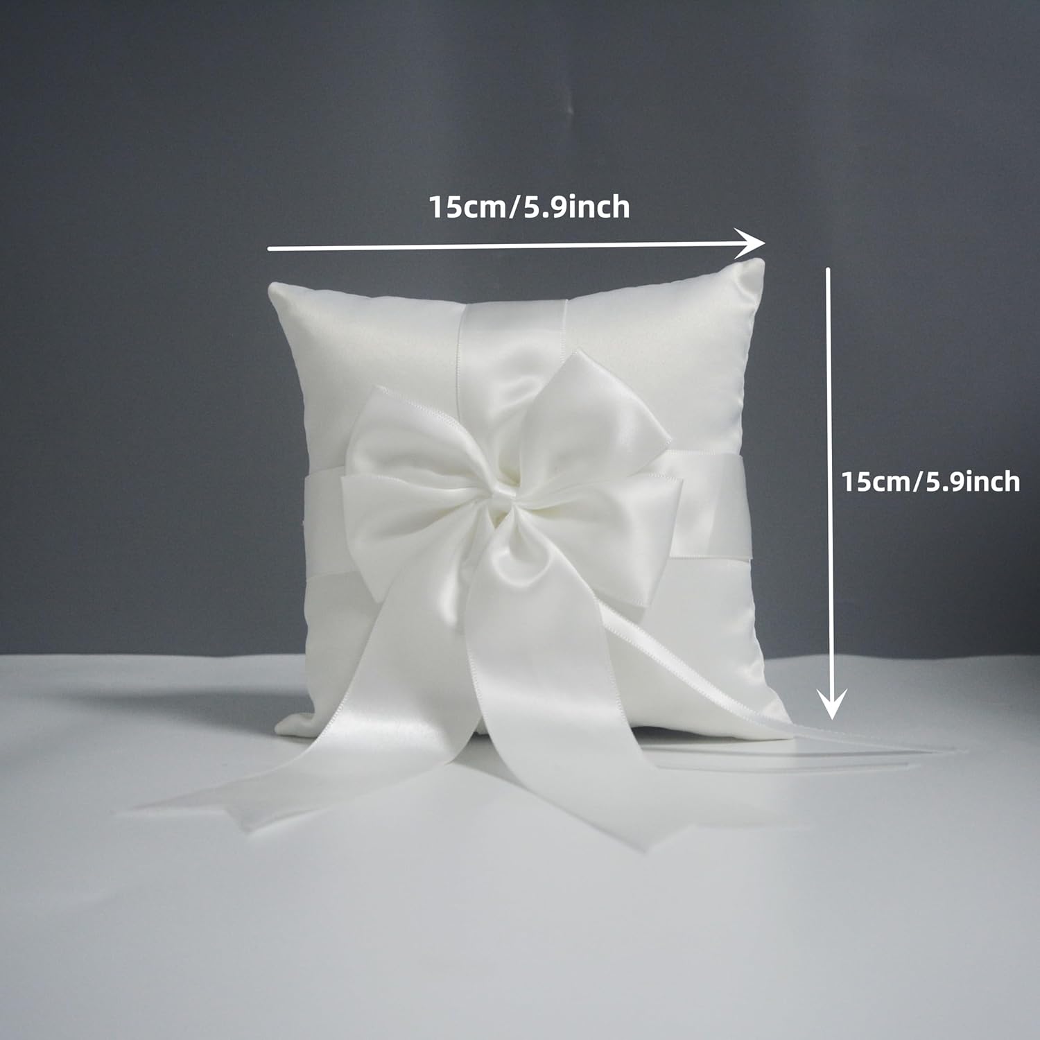 Ivory Ring Bearer Pillow, Satin Finish Bowknot Ring Pillow