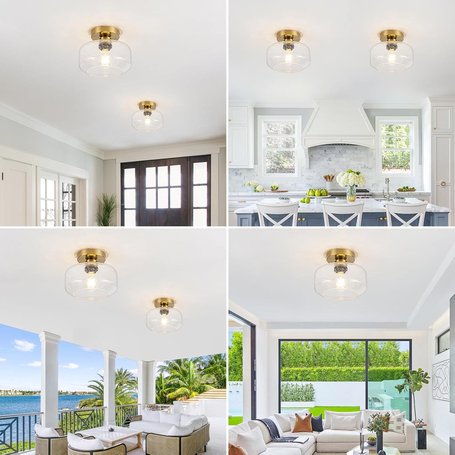 - 1.【Professional Semi-Flush Installation】 Gold flush mount ceiling light features 6” recessed design (total height≤8”) for low ceilings in hallways, laundry rooms. No wobbling with reinforced metal base.