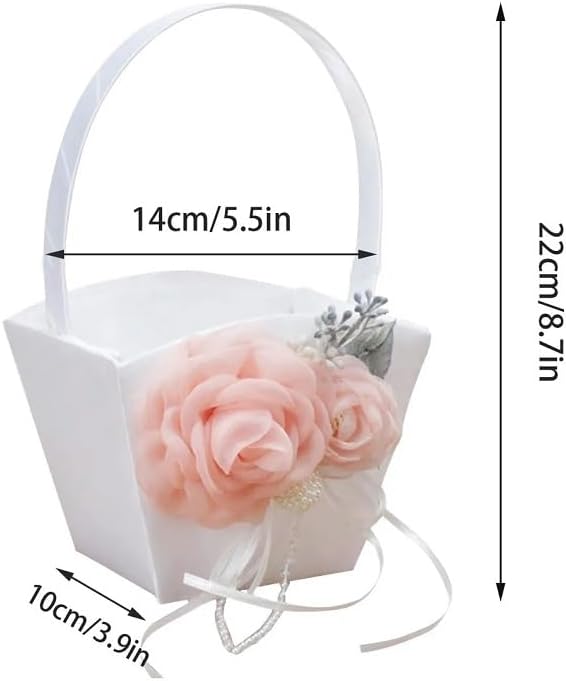 - š[Size and Info]*Pillow Size: Approx 8' x 8" inches . Please note White with 6" pillow, is smaller than the 8" ones. Basket size :Diameter: Approx 4.92 inch Height with Handle:Approx 8.27 inches. Size: Material: Satin, Ribbon and Rhinestone. Package Included: 1 x Ring Pillow and 1 x Baskets