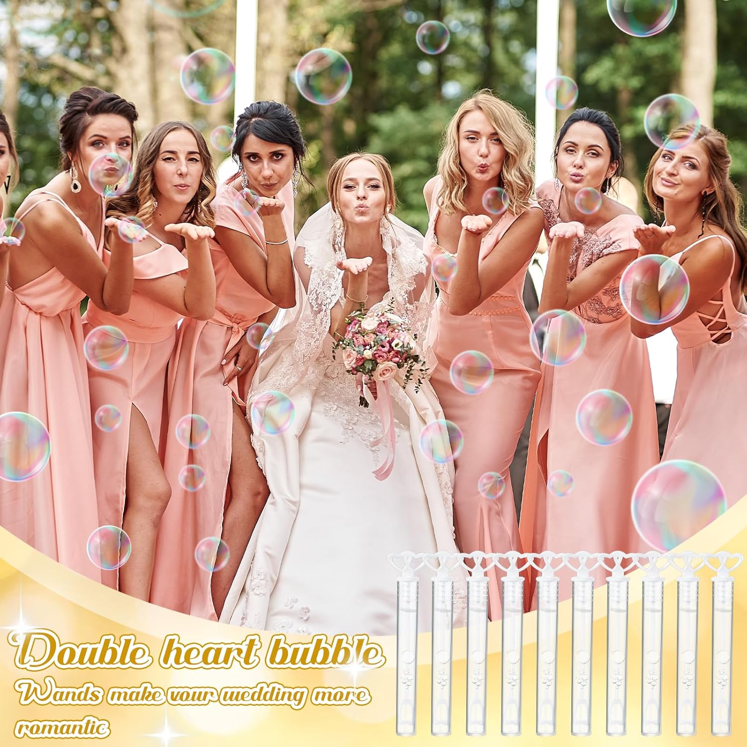 - Romantic Double Heart Design: our bubble tubes feature a charming double heart top design; Further sealed with a rubber stopper, these bubble tubes demonstrate a thoughtfulness that ensures the bubble solution does not leak during transportation and your guests' experience is pleasant