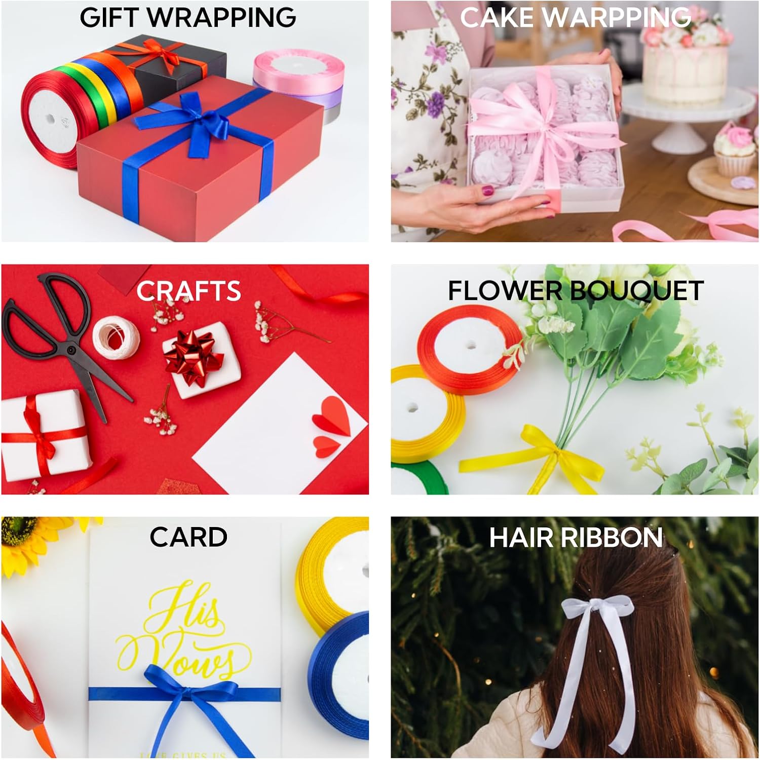 - 【Bright Color】: The satin ribbon for wrapping has multiple choices for colors. The solid color ribbon will not fade easily and is durable in different situations and occasions like birthday, wedding, party, baby shower, back to school, holiday decorations, home coming, anniversary, family gathering and more.
