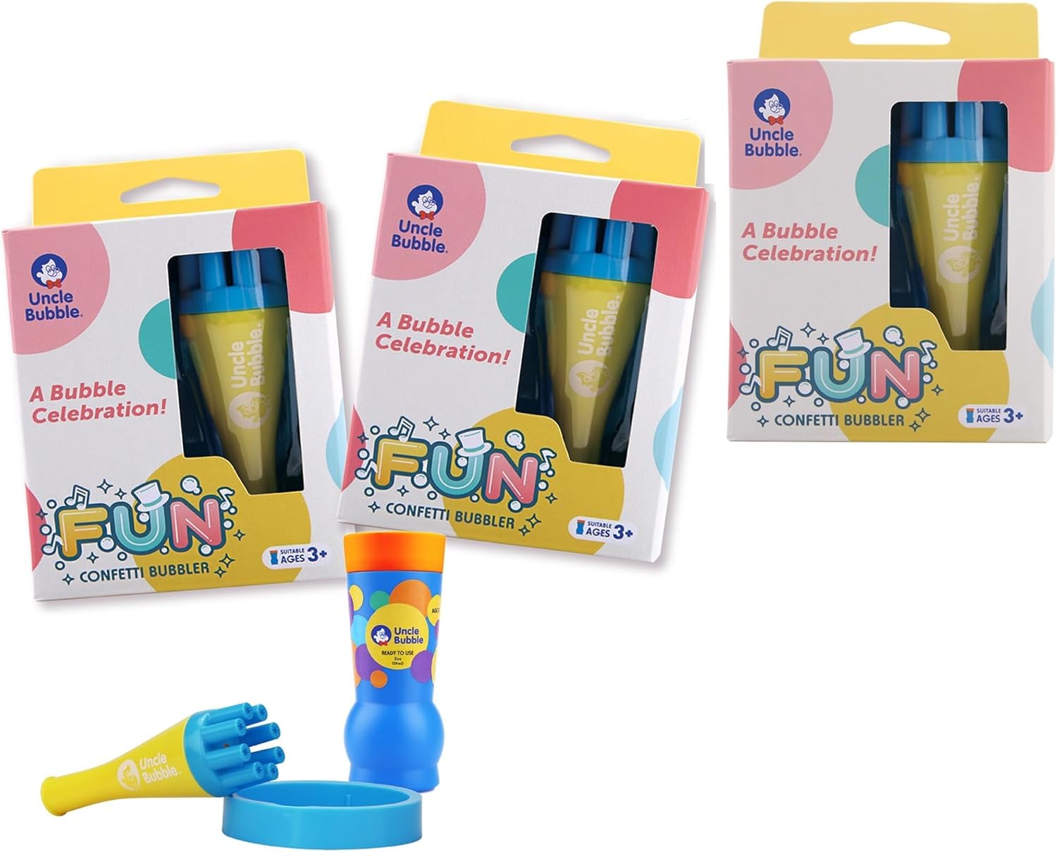 Uncle Bubble Mini Bubble Blower - Family Pack of 3 Confetti Bubbler, Fun Summer Toys for Toddler, Girls and Boys, Blow Thousands of Mini Bubbles in One Breath