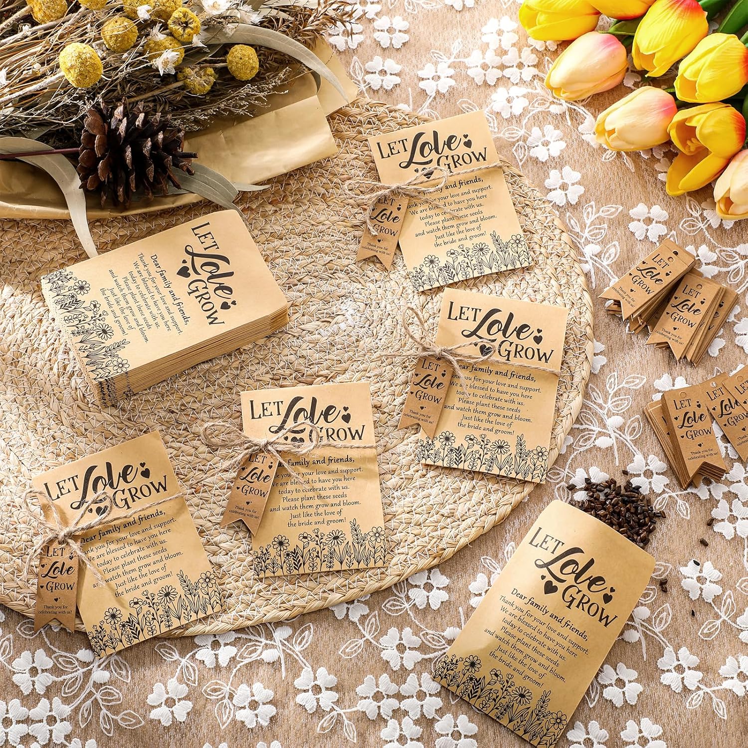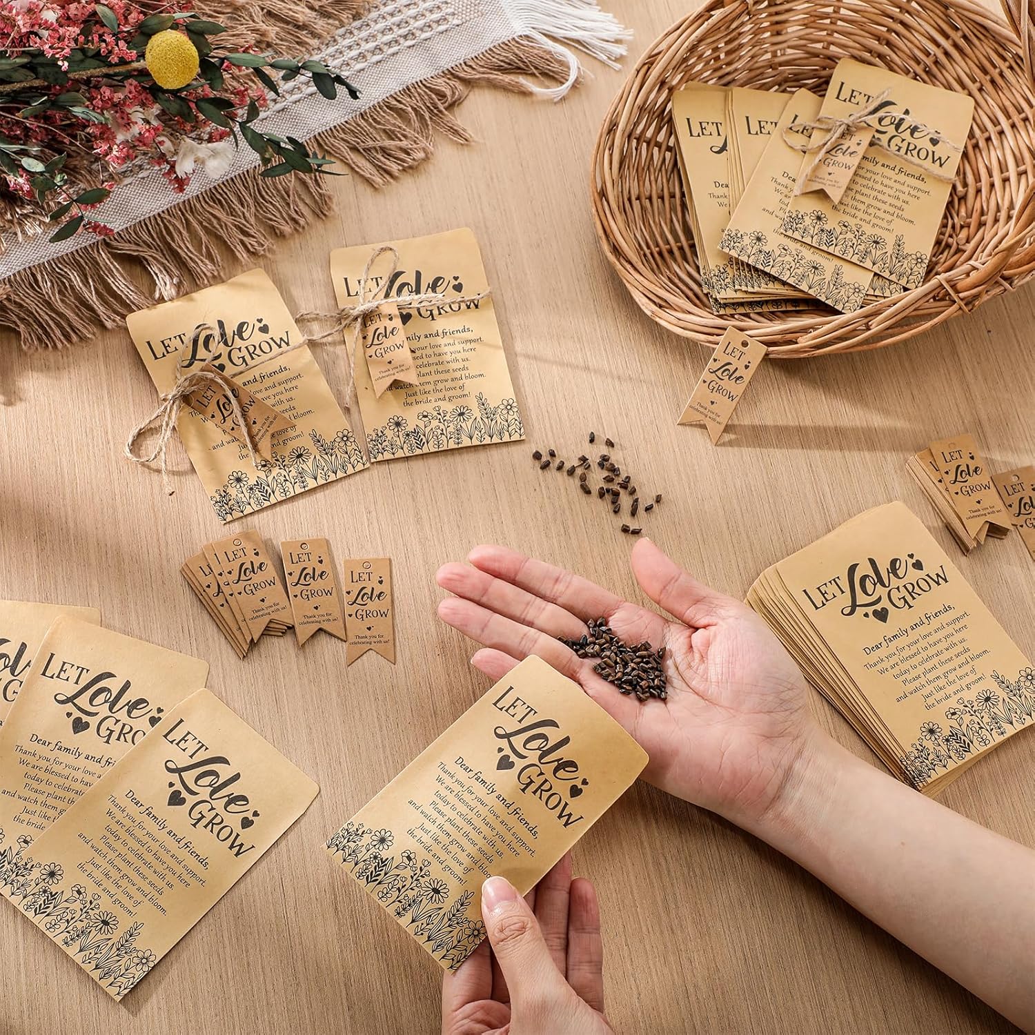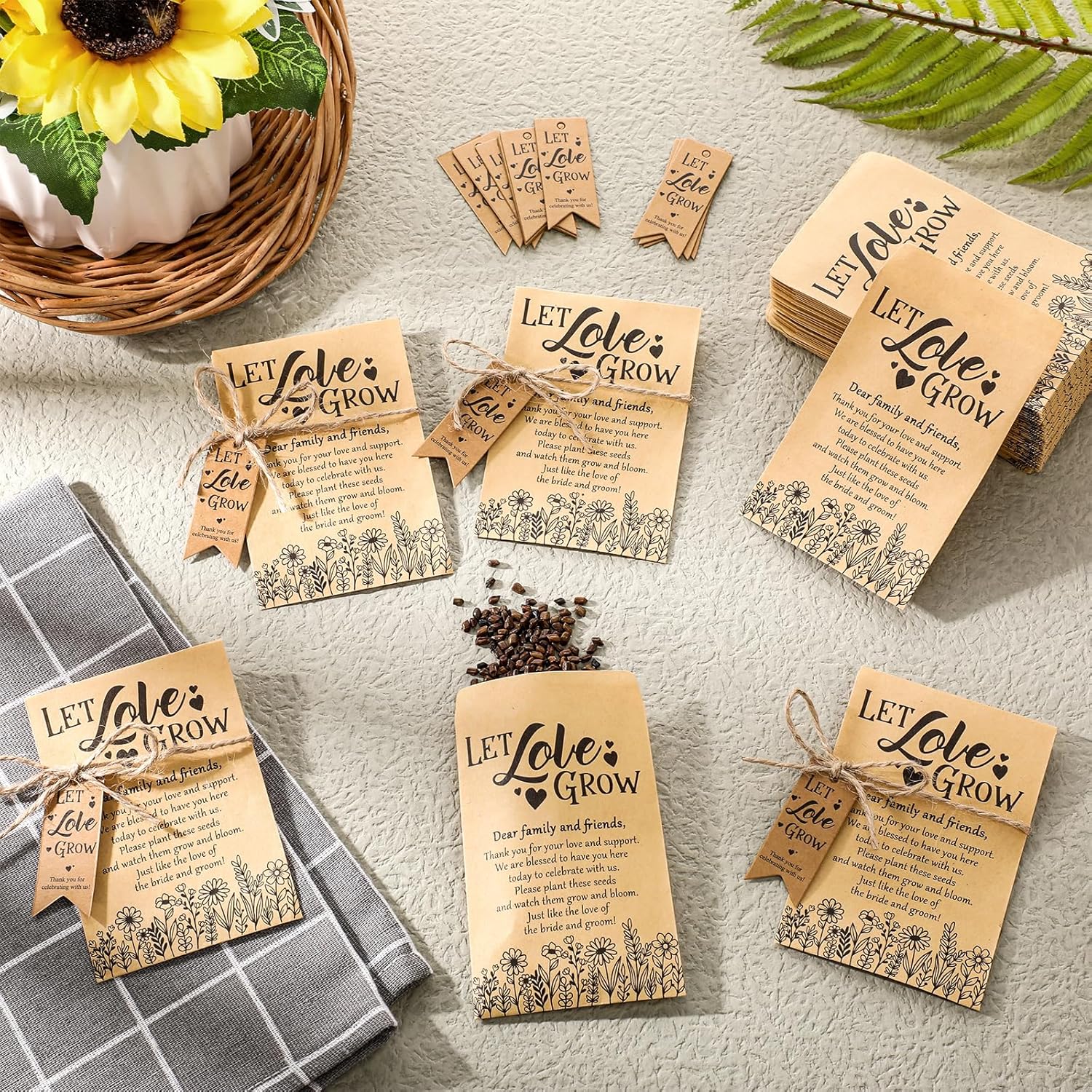 - Ideal Wedding Keepsake: experience the elegant touch of giving out 200 [Let Love Grow ] packets, 200 tags and 2 bundles of hemp ropes as wedding favors; This set immediately differentiates your wedding and gives your guests a memorable keepsake that symbolizes your important day