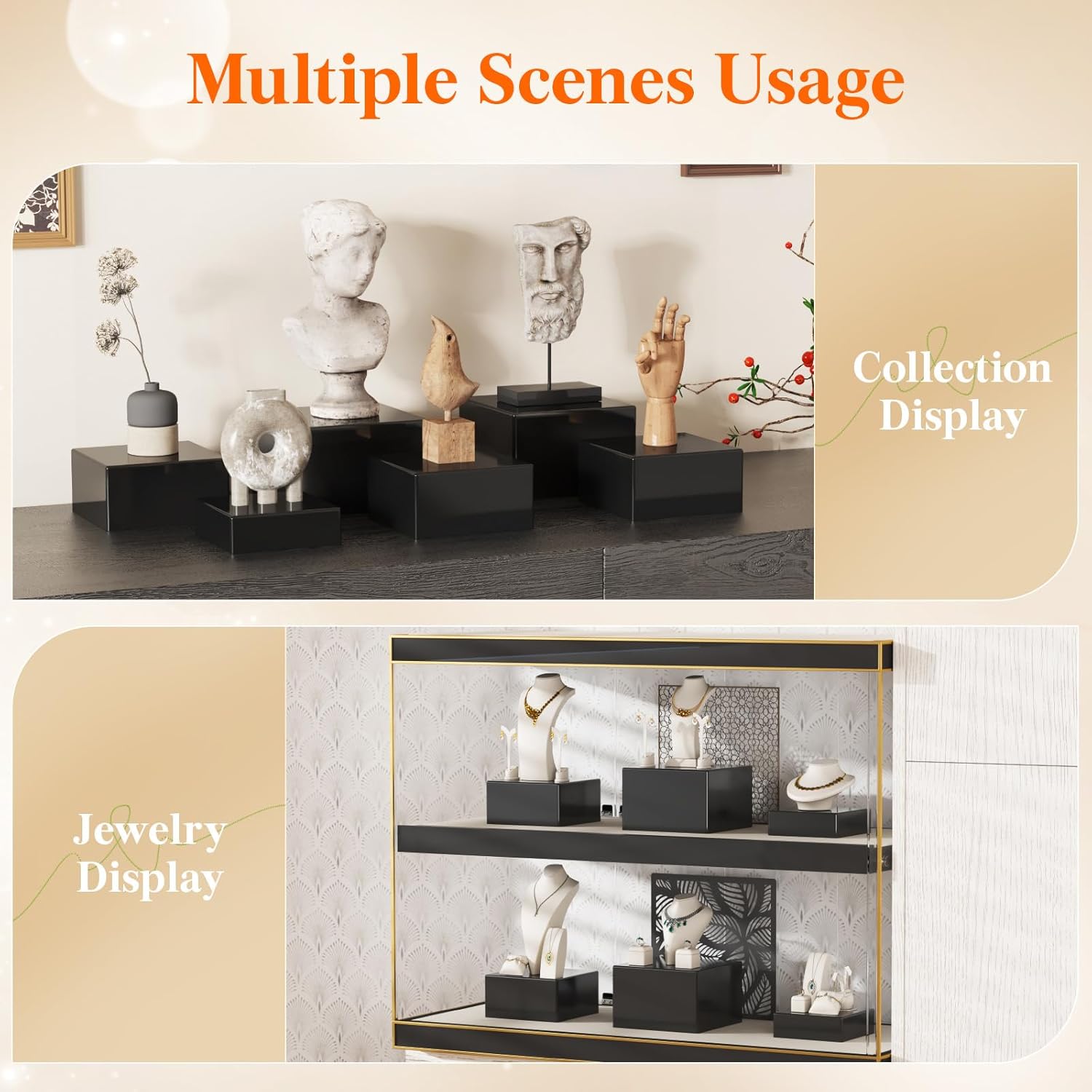 Lifewit Buffet Risers and Stands Up to 7.8", Food Risers for Buffet Table, Catering Dessert Cake Stand for Party, Collectibles Jewelry Display Stand, Black Cube Boxes Nesting Risers, 3 PCS