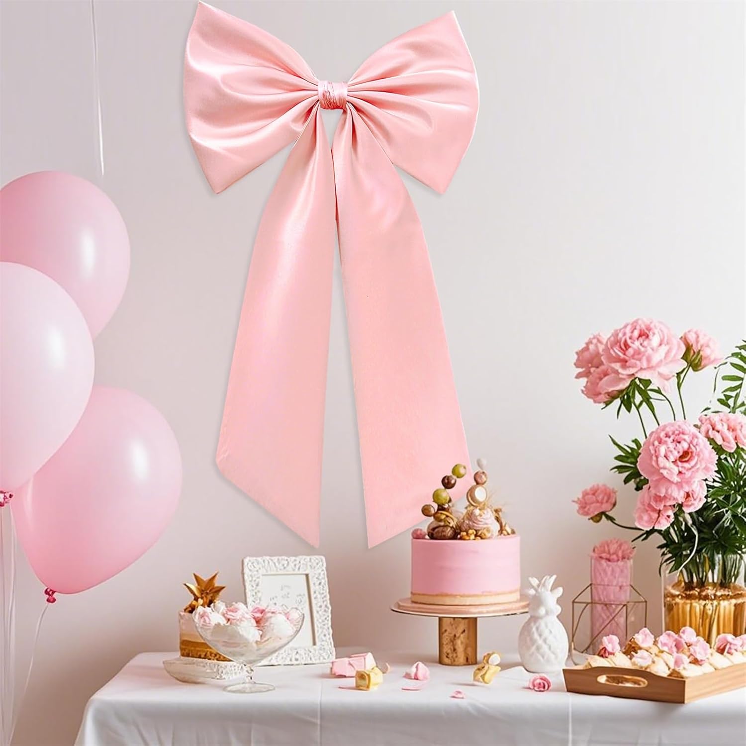 Large Pink Bow for Decorations Big Pink Ribbon Bows Banner Décor Large Bow Wall Hanging Decor for Baby Shower Bow Themed Wedding Party Coquette Birthday Decorations