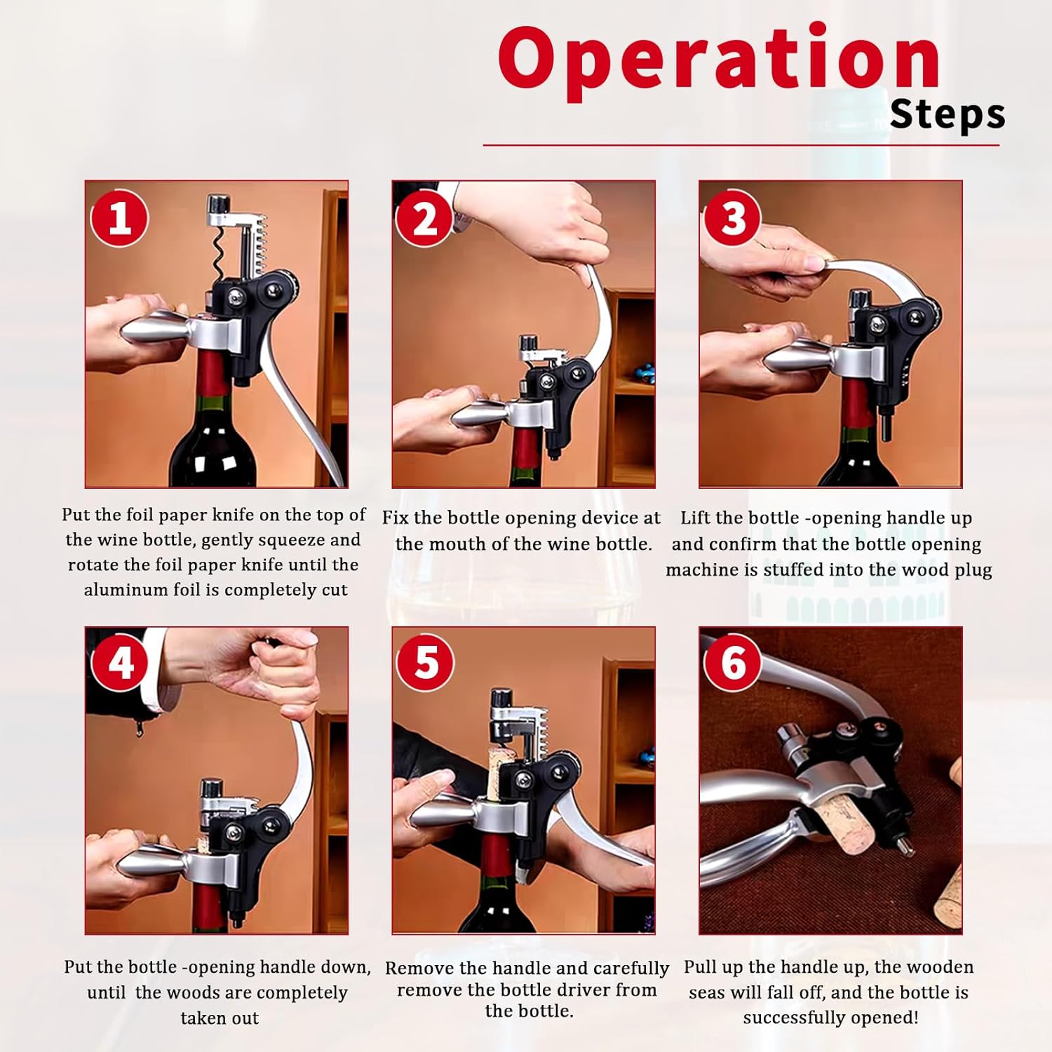 - 2.Wine Gift Set: This rabbit wine opener set includes rabbit wine opener,foil cutter, bottle stopper, drip ring, and wine pourer. It can easily remove cork from the wine bottle without effort. The rabbit wine bottle opener has a luxurious appearance and has a long durability