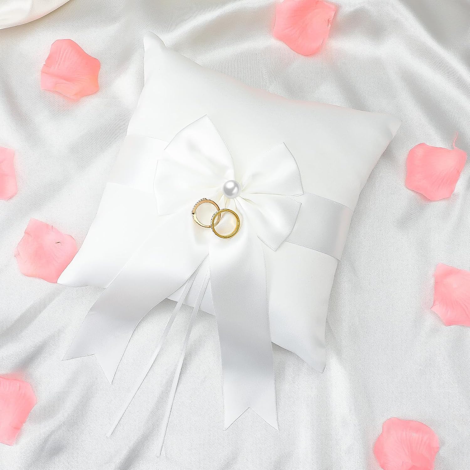 - 【High-Quality Material】This wedding ring pillow is crafted from matte satin and adorned with soft bows; the ivory ring bearer cushion creates an elegant and exquisite atmosphere.