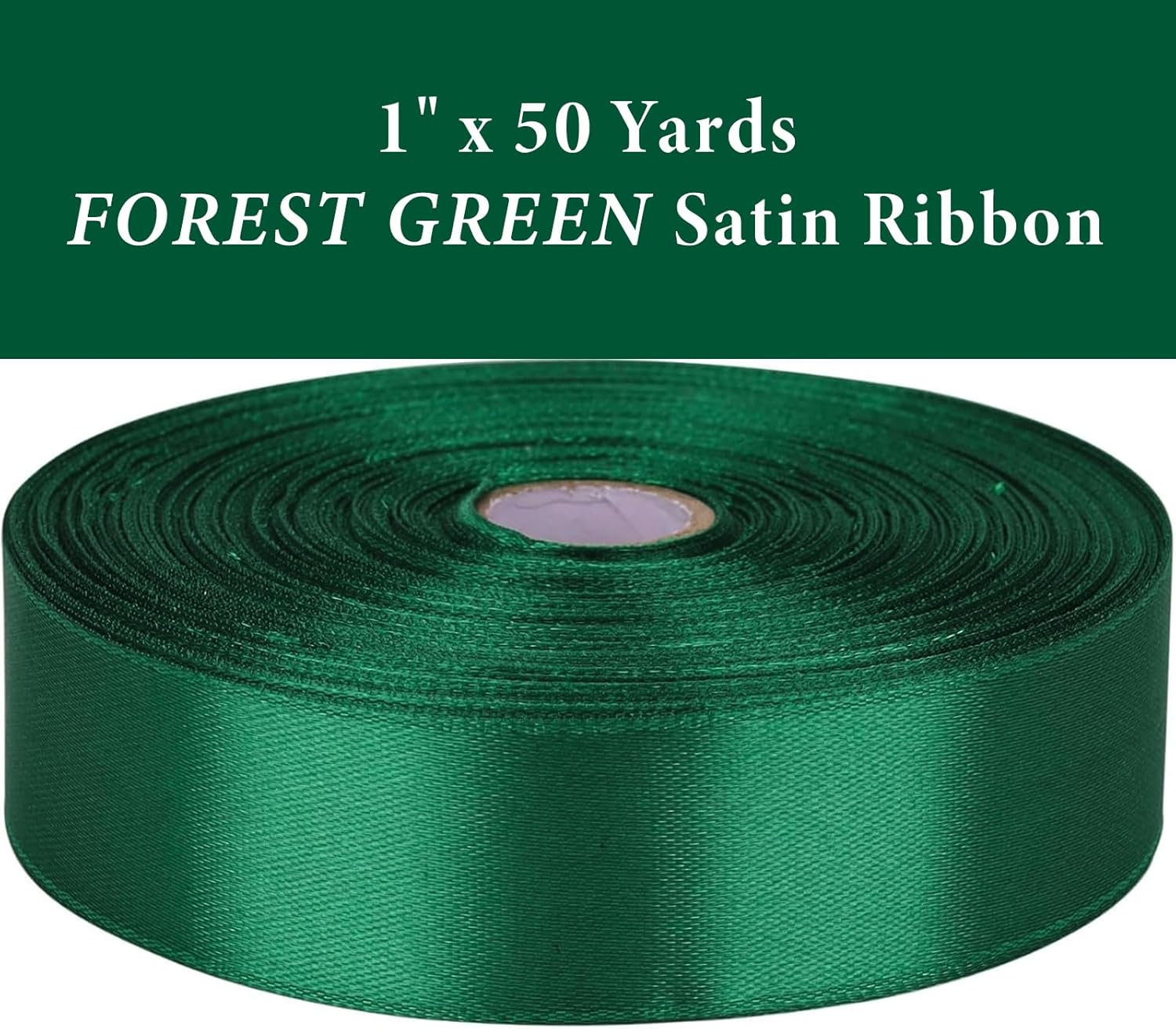 1 Inch Forest Green Satin Ribbon 50 Yards Solid Fabric Ribbons for Gift Wrapping, Crafts, Floral Arrangements, Wedding, Party, Holiday Decor