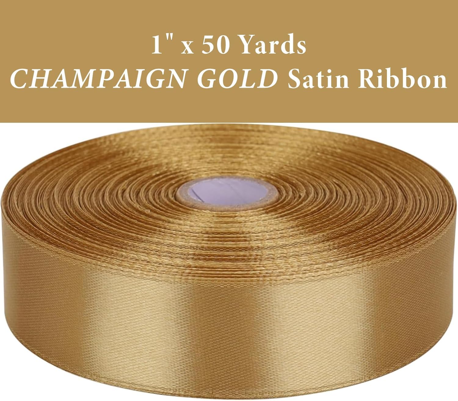 1 Inch Champaign Gold Satin Ribbon 50 Yards Solid Fabric Ribbons for Gift Wrapping, Crafts, Floral Arrangements, Wedding, Party, Holiday Decor