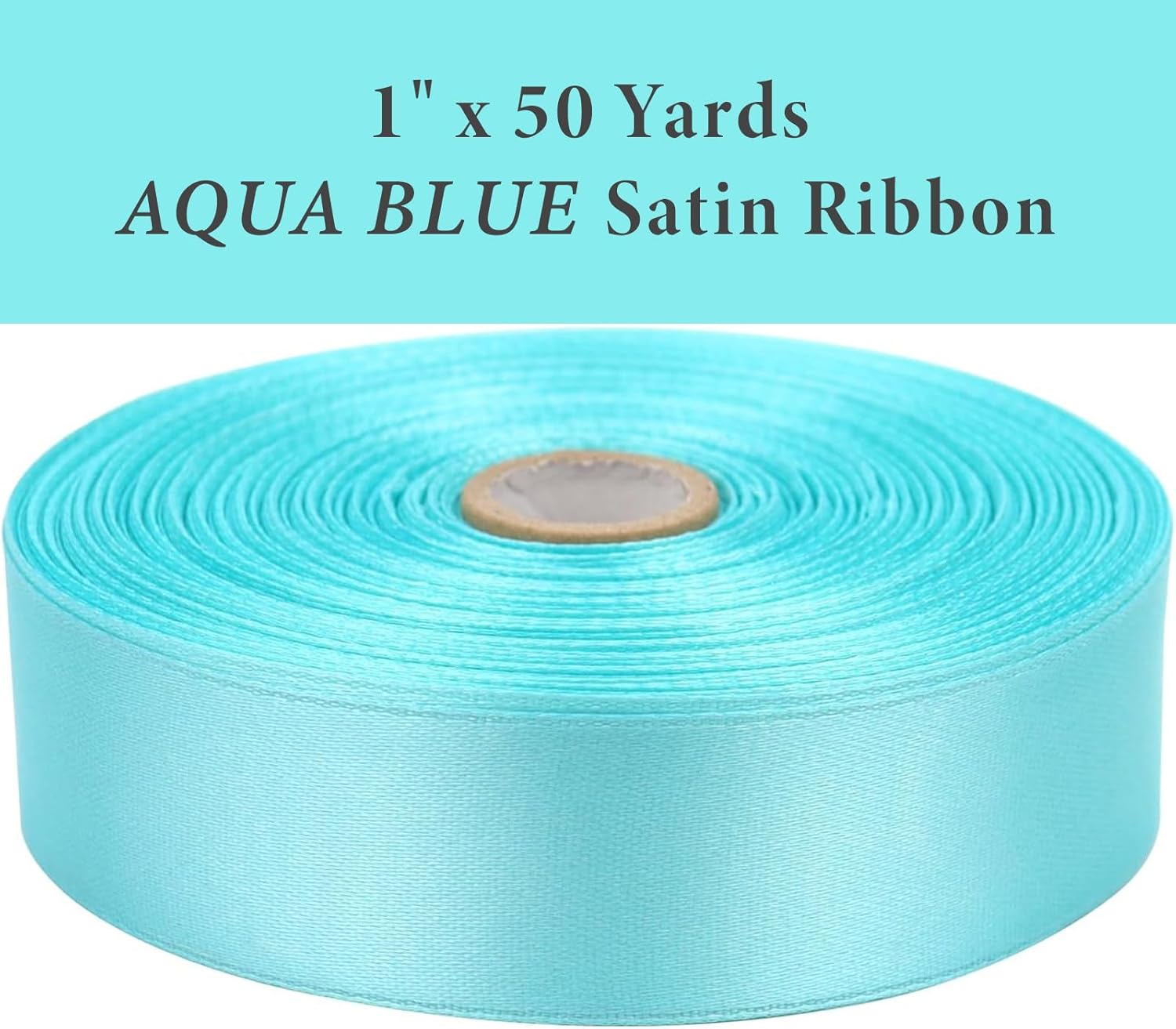 1 Inch Aqua Blue Satin Ribbon 50 Yards Solid Fabric Ribbons for Gift Wrapping, Crafts, Floral Arrangements, Wedding, Party, Holiday Decor