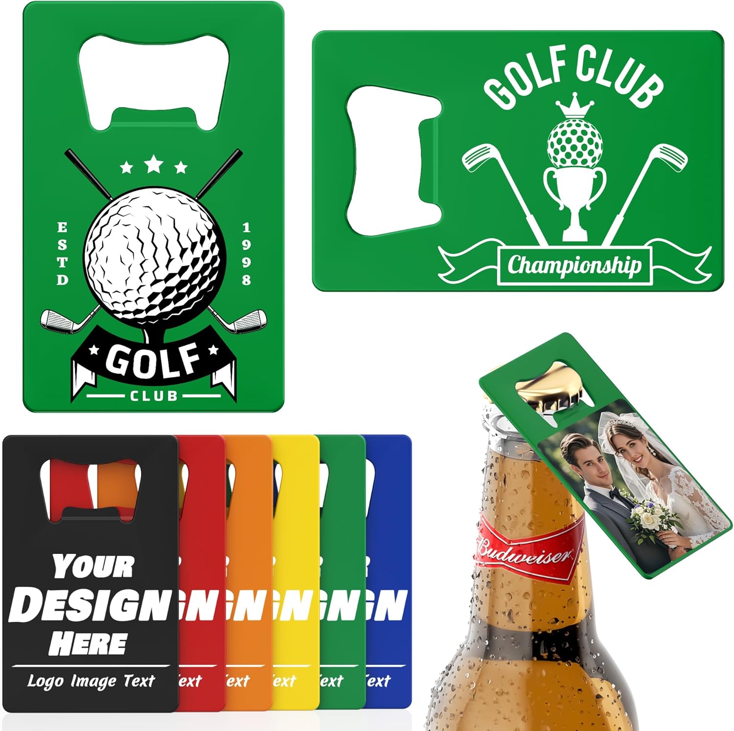4-100 Pcs Custom Bottle Opener, Personalized Stainless Steel Credit Card Bottle Opener, Full Color Print Custom Beer Can Opener Bulk for Bar, Wedding Favors, Party, Promotion, Groomsmen Gift (Green)